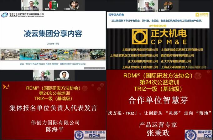 为推广先进创新方法,践行社会责任,RDMi®(国际研发方法协会)联合厦门市科协、智慧芽、柳州市质量管理协会等单位,于2025年11月2日和9日(均为周日)成功举办了第二十四次TRIZ一级在线免费公益培训。本次为期两天的培训吸引了全国各地1400余名研发方法爱好者踊跃参与。这也是本年度第6场公益培训,累计参训人数已突破7000+,持续推动创新方法的普及与应用,让更多人真正走进创新方法、掌握创新逻辑。(错过本次培训的可点击如下链接报名下一次公益培训:RDMI®免费TRIZ创新方法一级公益培训通知)。培训的最后一个环节为TRIZ一级认证考试,通过率高达84.4%,通过考试的学员将获得由RDMi®颁发的TRIZ一级认证证书。(部分学员的反馈在底部)。未来将在实战经验丰富的TRIZ三级及以上专家带领下,把创新方法落地到实际工作中,解锁更多解题新思路。截至目前,RDMi®公益培训已累计惠及超过3万人系统学习掌握先进创新方法论。 我们始终致力于大幅降低企业掌握创新方法的门槛与成本。未来,RDMi®将继续深耕#创新方法推广,赋能企业提升核心竞争力,为社会发展持续注入创新动能。