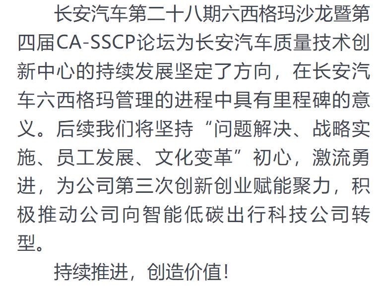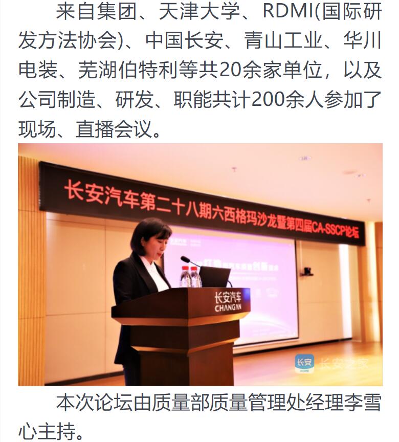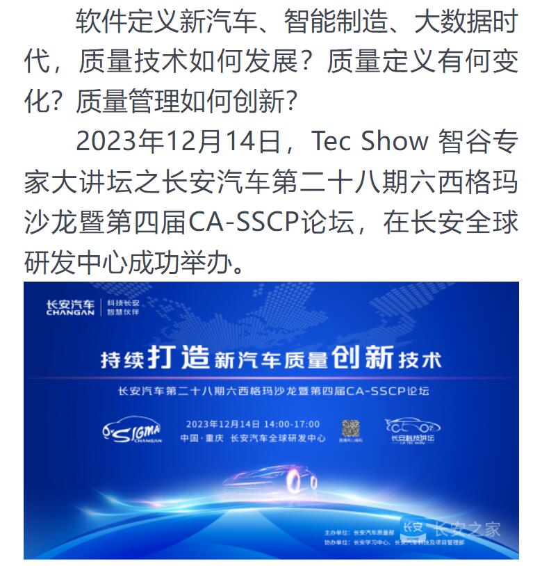 原文转于:前进质量人-持续打造新汽车质量创新技术-长安汽车第二十八期六西格玛沙龙暨第四届CA-SSCP论坛成功举办