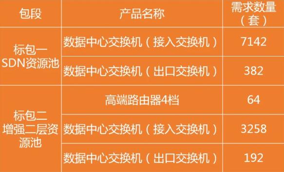 根据前期公告,本项目采购数据中心交换机10974台,高端路由器64台。