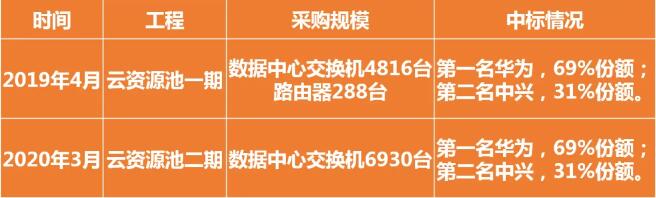 在前两期采购中,均是华为、中兴中标。