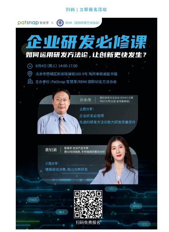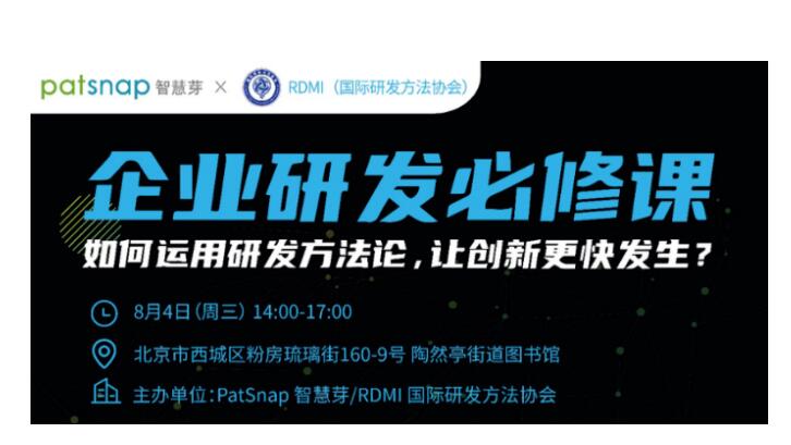 8月4日,RDMI(国际研发方法协会)联合智慧芽主办的“企业研发必修课:如何运用研发方法论,让创新更快发生” 线下主题沙龙将在北京市西城区粉房琉璃街160-9号 陶然亭街道图书馆举办。