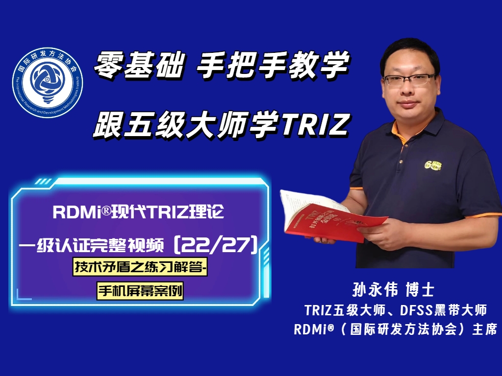 (长按二维码联系班主任报名)各位研发方法爱好者们, 自从RDMI®自3月以来推出了公益TRIZ一级(基础级)培训以来,已经多次举办为期两天的培训,先后让8000多人了解到了先进的研发方法论理论体系。其中有3000多人获得了RDMI® TRIZ一级认证证书。让许多研发人员从TRIZ专家们在工作之中巧妙解决过大量实际案例中,感受到了方法论在解决技...